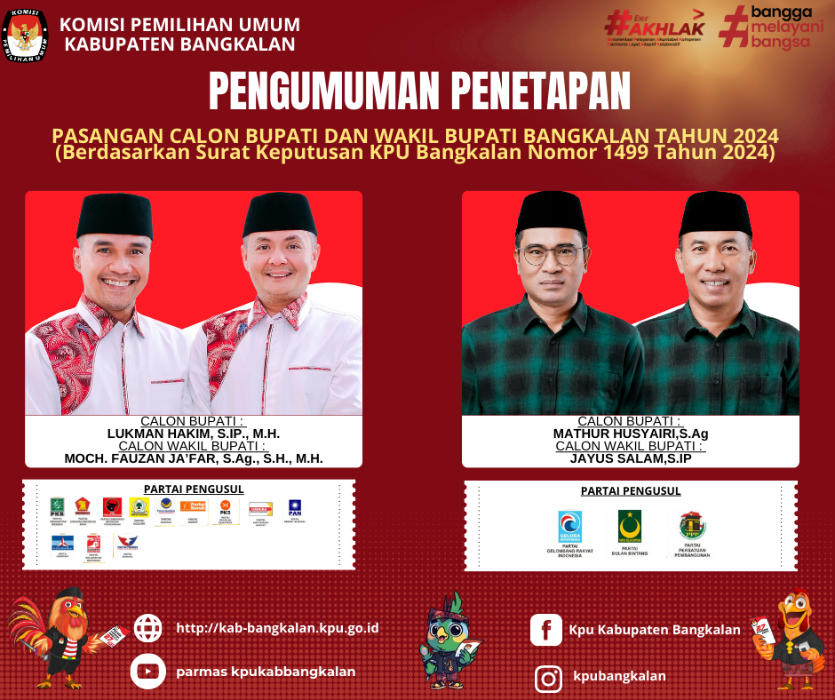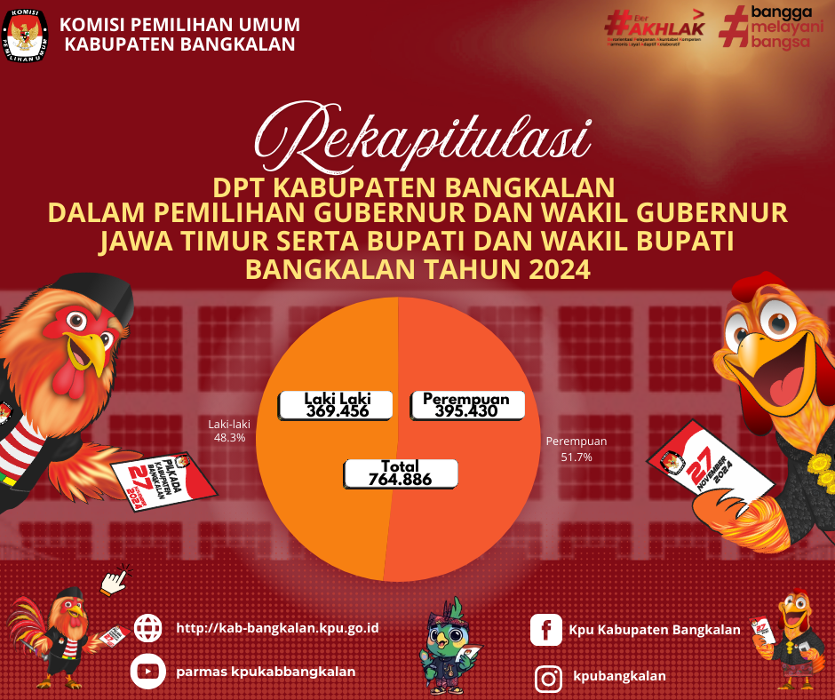 KPU Kabupaten Bangkalan pada hari Jumat tanggal 20 September 2024 di Kantor KPU Kabupaten Bangkalan telah melaksanakan Rapat Pleno Terbuka Rekapitulasi Daftar Pemilih Tetap (DPT) Kabupaten Bangkalan dalam Pemilihan Gubernur dan Wakil Gubernur Jaw Timur serta Bupati dan Wakil Bupati Bangkalan Tahun 2024.